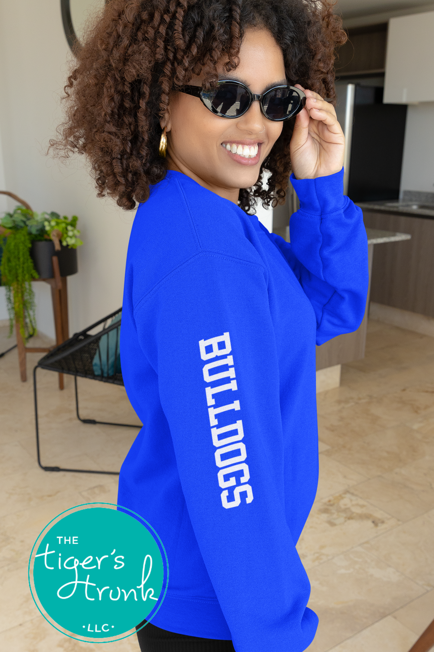 - ~12" Line on Sleeve - block font running vertical on sleeve. Length is approximate and dependent on shirt size. If you have a preference of whether the print is on the left or right sleeve, please let us know in the personalization box.