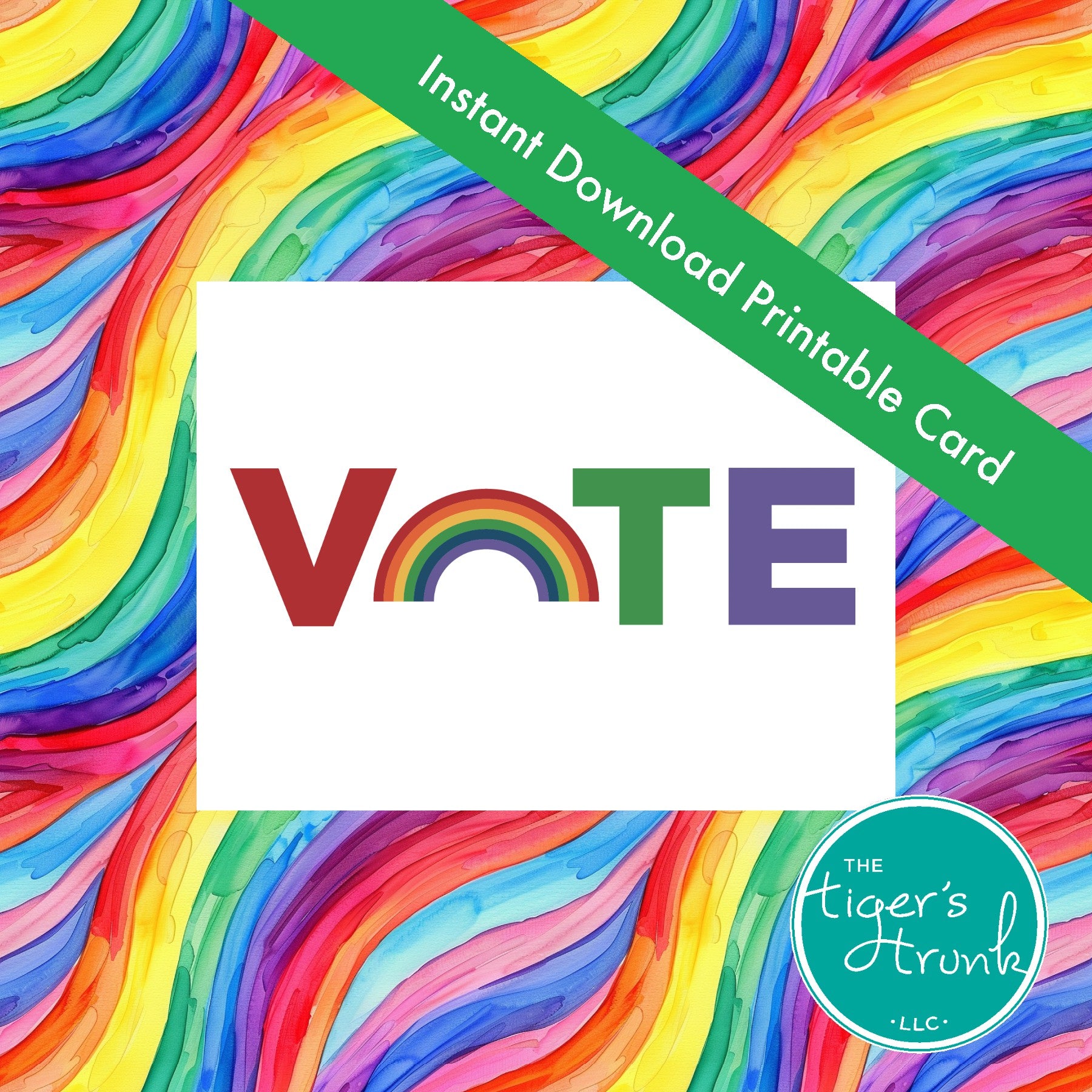 Bold, simple, and filled with meaning—this printable Pride card features the word VOTE with a rainbow O to celebrate identity and inspire action. Ideal for Pride Month, political engagement events, or allyship efforts. Just download, print, and share the reminder: your voice matters.
