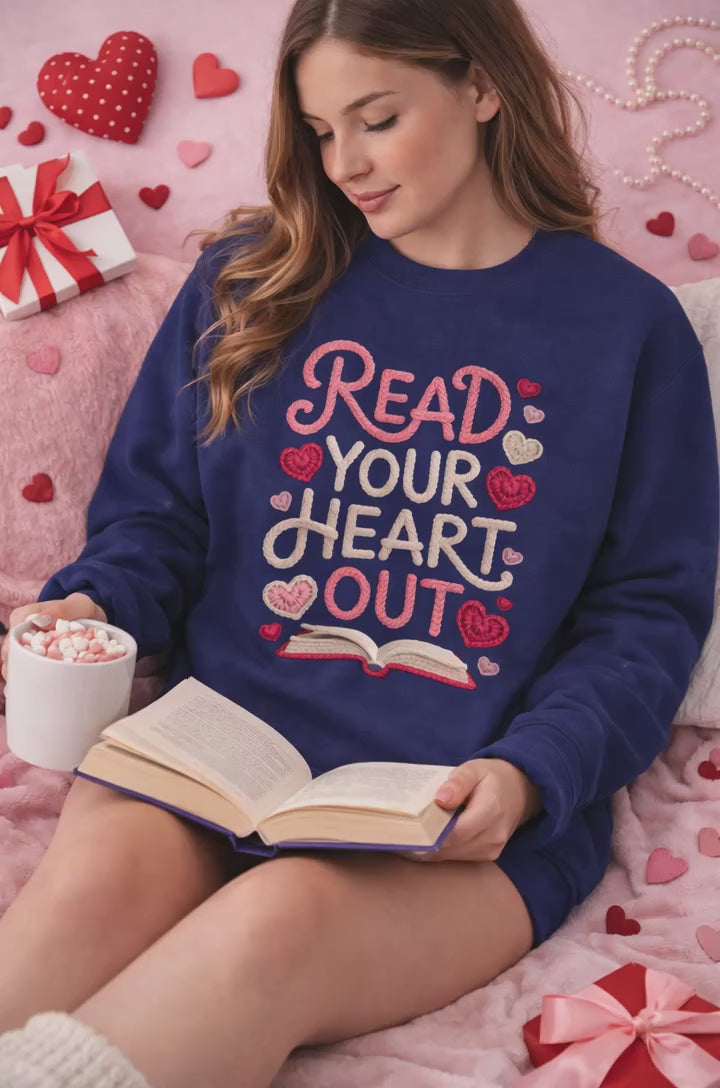 This Read Your Heart Out Valentine sweatshirt is a cozy, book-inspired design created for readers who love celebrating Valentine’s Day with a soft, romantic, and bookish aesthetic. The stitched-style lettering and open book artwork are paired with layered heart details, making this sweatshirt a perfect choice for romance readers, book club friends, and anyone who proudly reads their heart out all year long. Available in pink, sand, navy, maroon, gray, and purple, this sweatshirt is designed to pair easily with everyday outfits while adding a warm, book-loving touch to your Valentine’s Day wardrobe. Ships from a smoke-free, cat-friendly, hypoallergenic dog-friendly home.
